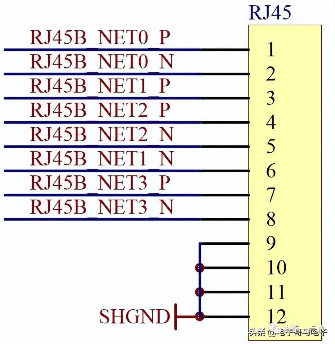 RGMII接口对应的数据线比较多,包括4个接收数据线、4个发送数据线、接收数据时钟、发送数据时钟等。