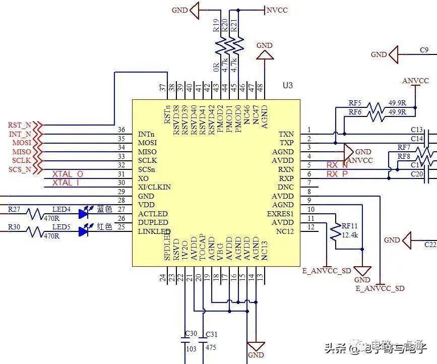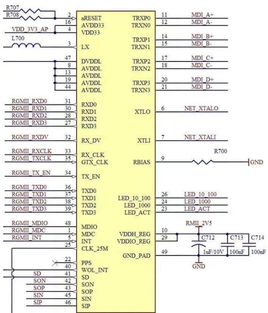 图2是PHY芯片AR8031原理图,AR8031是高通公司生产低功耗PHY芯片。