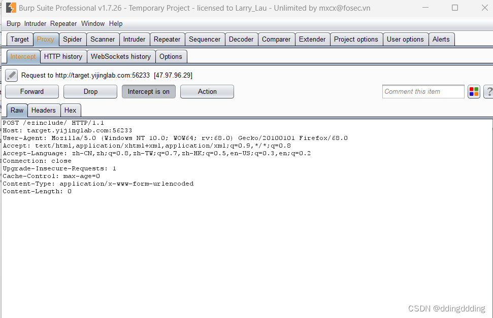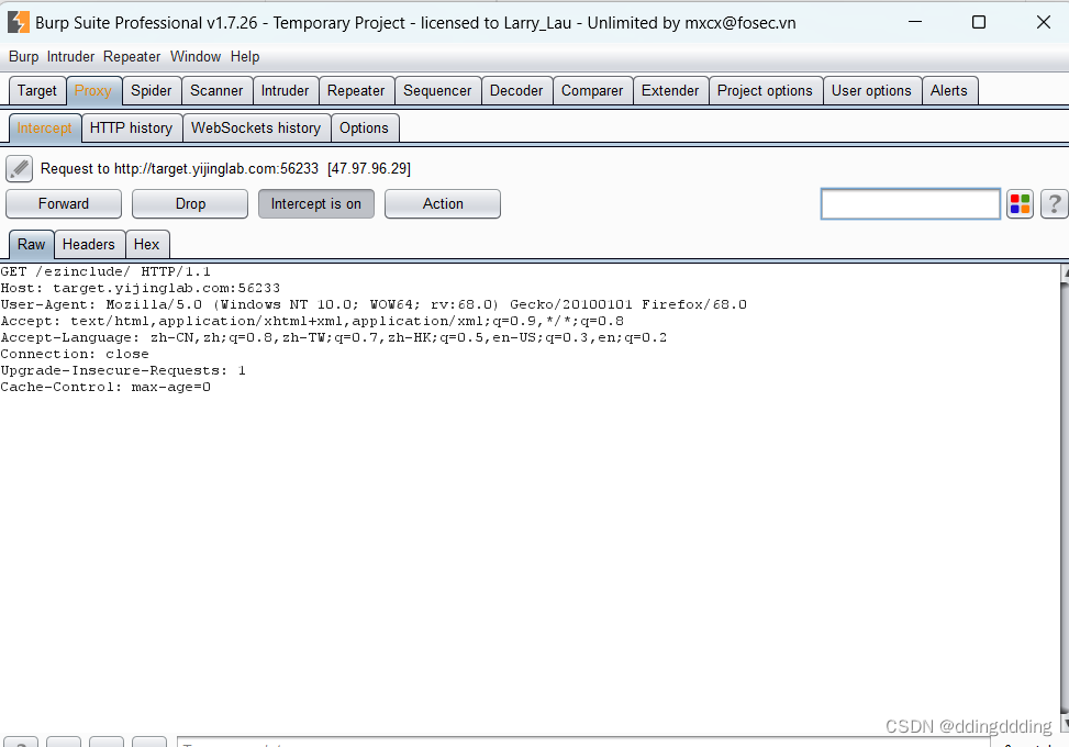 1.首先打开网站,通过burpsuite进行抓包,图片如下: