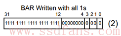 然后系统软件往该BAR0写入全1,得到: