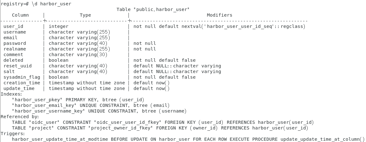 harbor_user 表结构