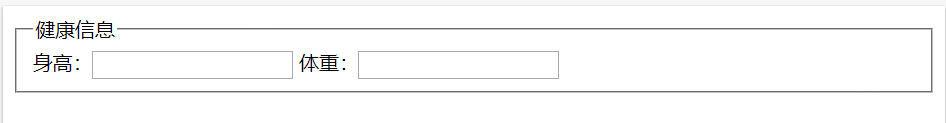 <!DOCTYPE HTML> <html> <body> <form> <fieldset> <legend>健康信息</legend> 身高:<input type="text" /> 体重:<input type="text" /> </fieldset> </form> </body> </html>