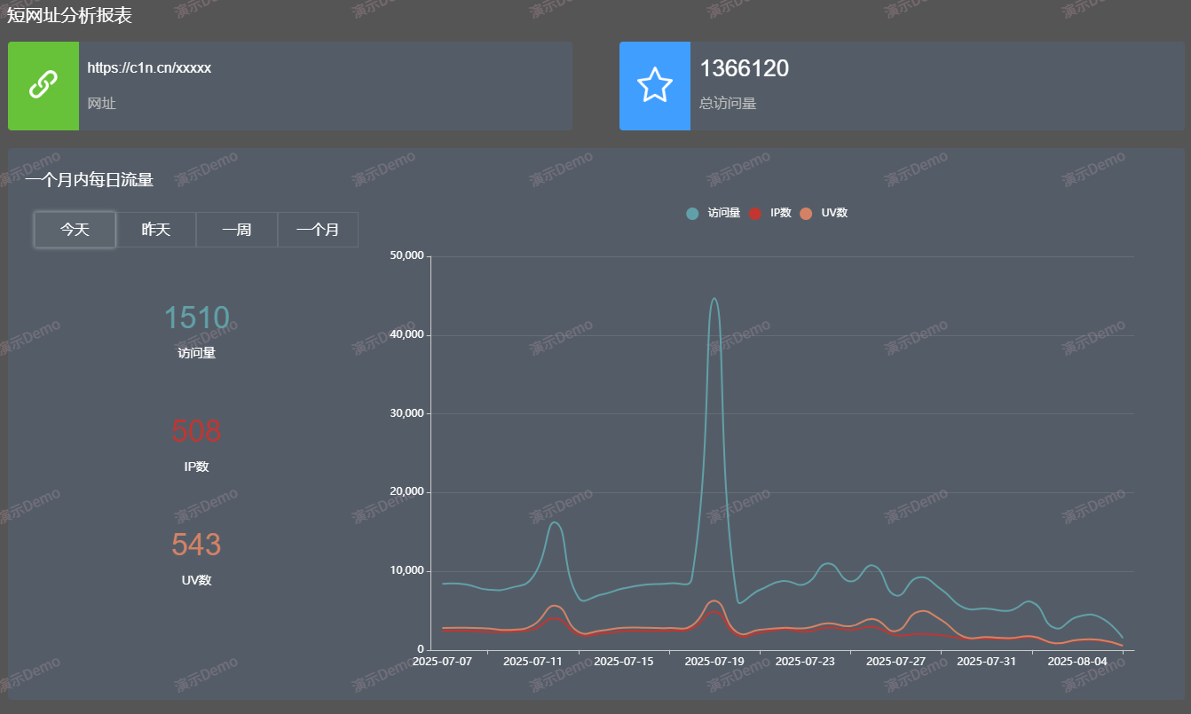 另外,C1N短链接(c1n.cn)还提供了数据报表一键分享,协作效率翻倍,之前用其他工具时,导出数据还要整理格式才能给团队看,C1N 的一键分享功能省了很多事:生成报表链接后,直接发给同事就能查看,支持按时间段筛选数据,开会讨论时当场调数据特别方便。上周给客户做汇报,5 分钟就调出了近 30 天的完整数据,客户反馈说比之前的 Excel 表格直观多了。