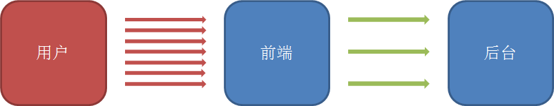 正常情况下,从用户端到后台的数据流动是很均衡的,用户的访问量在后台可承受的范围内。