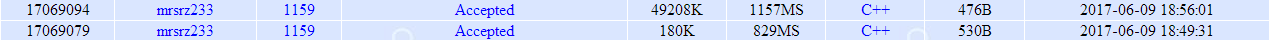 由此可见,方法②完胜方法①(尤其是内存,相差49028K!)。(不会滚动数组的使用方法①也是个选择)