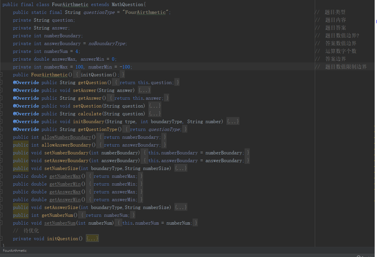 题库只关心Question中的方法,在数学中我们定义了关于边界的设定和计算方法抽象,至于如何实现我们交给了最终类。
