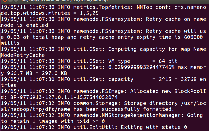 进行namenode格式化,出现status 0 和 successfully formatted则表示成功