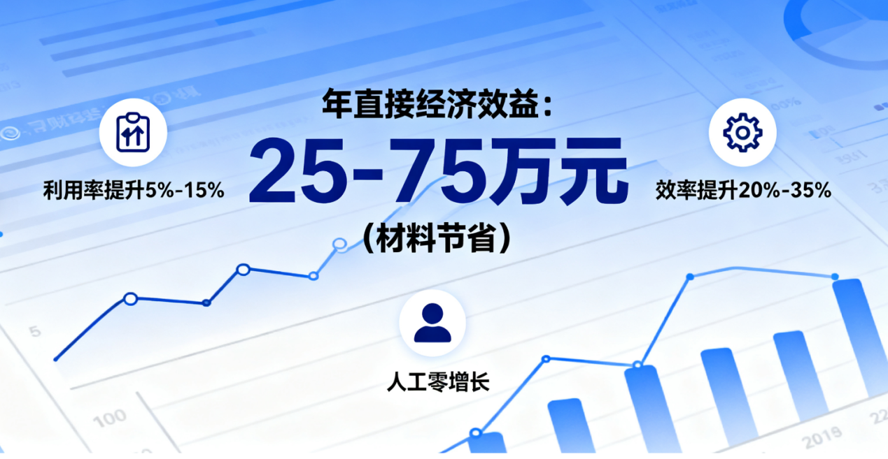 材料成本节省:Radan的高效嵌套算法可以将材料利用率提升至90%以上,相比传统套料方法提升5%-15%。对于一家年材料成本500万元的企业,仅材料节省一项,一年就可带来25-75万元的直接经济效益。