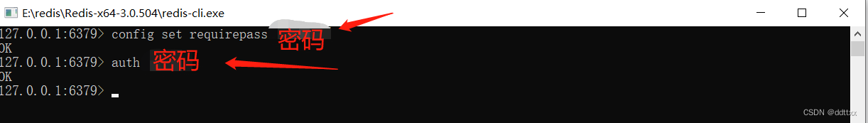 有的时候会遇见第二种情况 在redis-cli.exe上直接 config set requirepass "你的密码" 他会提示你
