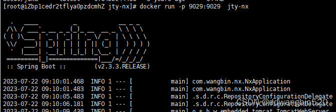 输入上述命令后会出现springboot项目启动的那一幕,如下图所示: