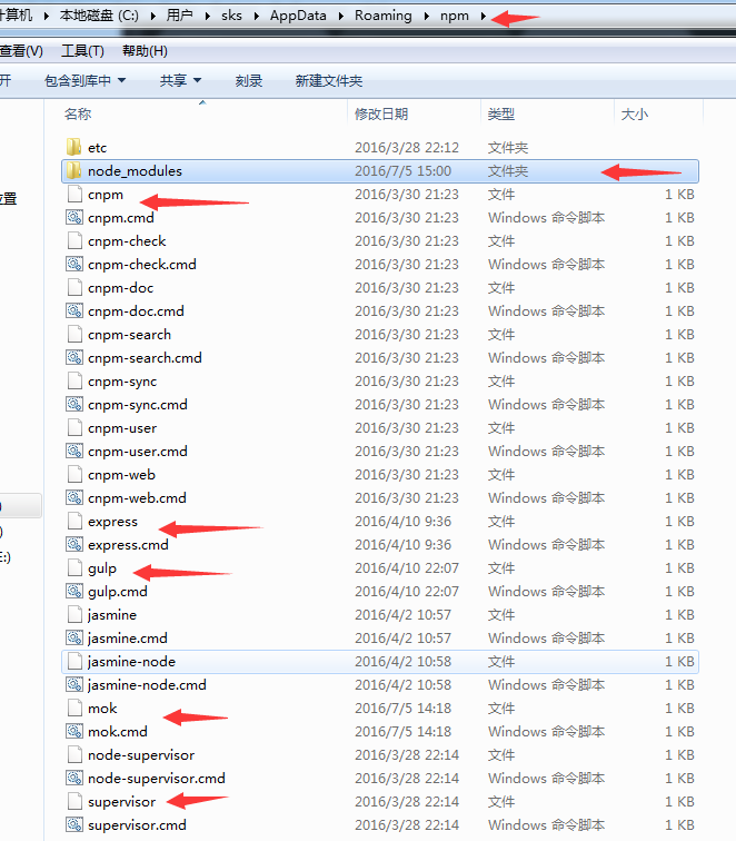 比如:supervisor mok 还有cnpm,express之类的。gulp之类的。