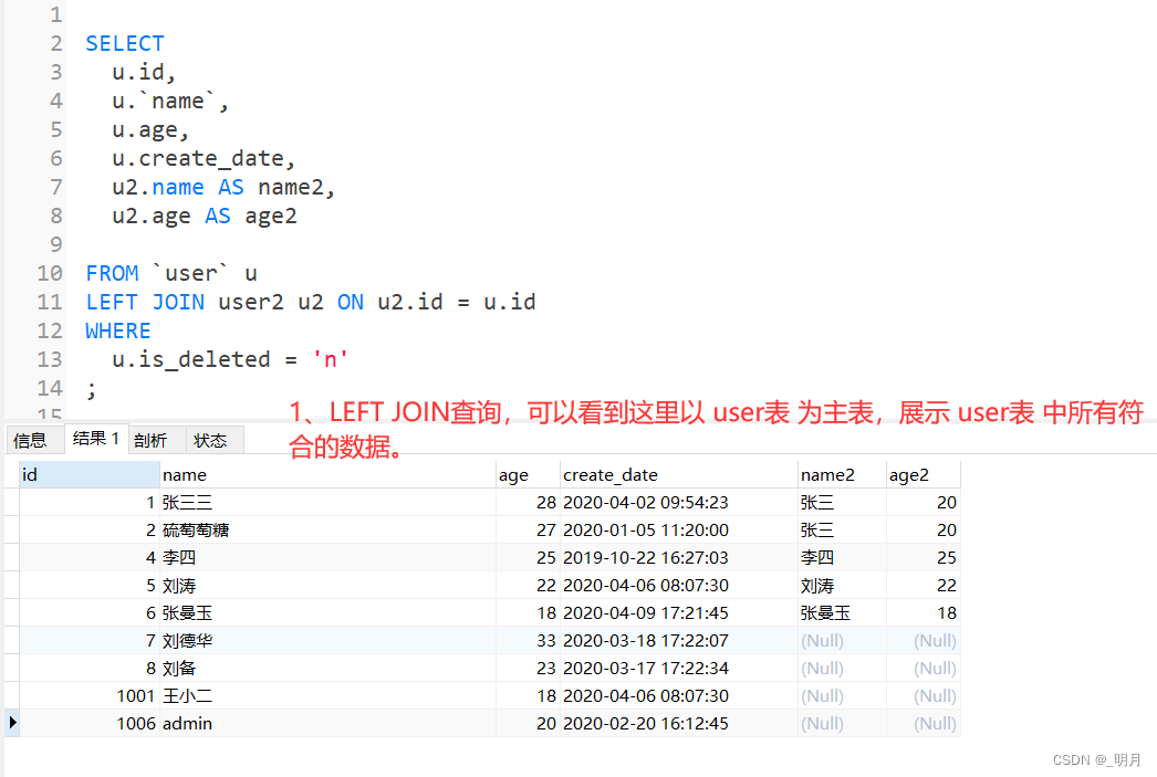 1、使用 LEFT JOIN 进行表直接关联,查询出来的数据如图一所示: