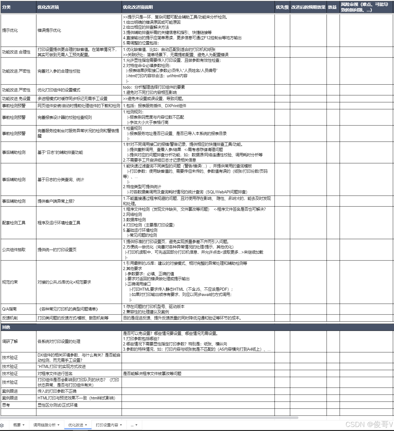 最近继续对打印问题进行梳理,从程序实现角度整理了可能存在的异常状况,和导致这些状况的可能原因。基于此,初步得到一些优化改进项。在已经整理出的优化改进点中,似乎很多就是程序设计上应该考虑和注意的。或许不一定都对,但分享出来供自己备忘,供参考: