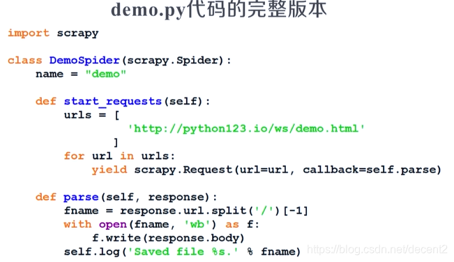 class DemoSpider(scrapy.Spider): #scrapy.Spider的子类
