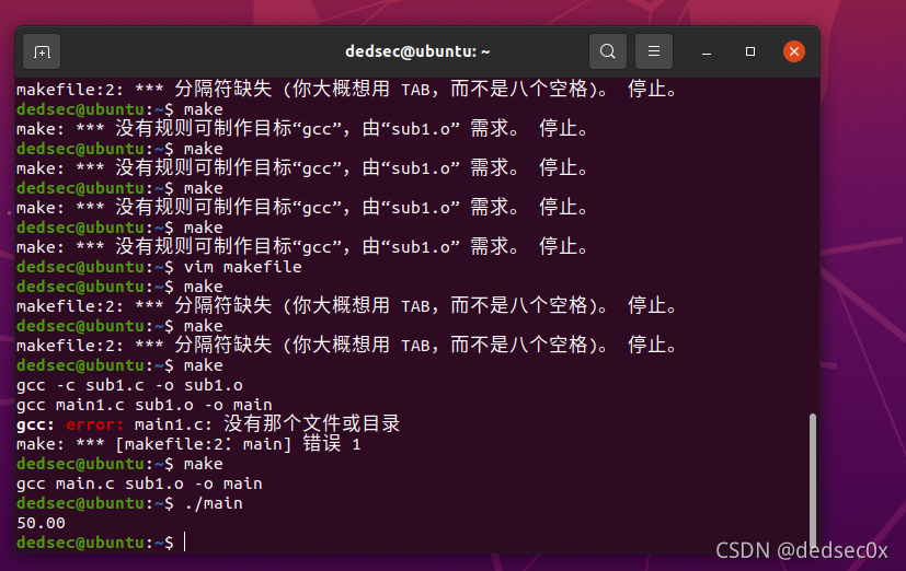 之后在此文件终端下执行命令make,即可编译得到可执行文件main。