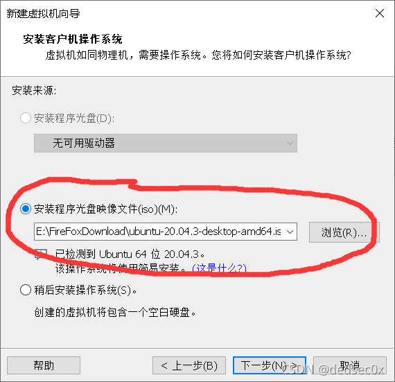 点击安装程序光盘映像文件,并找到下载Ubuntu的路径