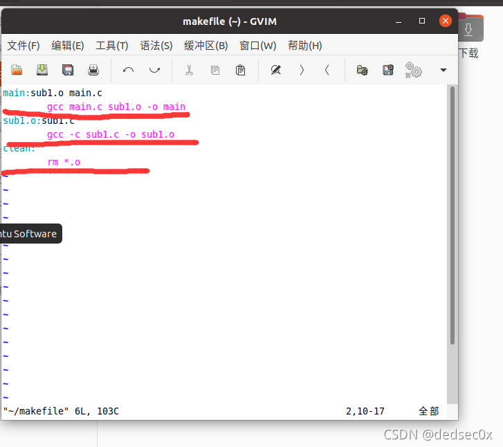 创建makefile文件,输入命令vim makefile并在文件中输入以下代码: