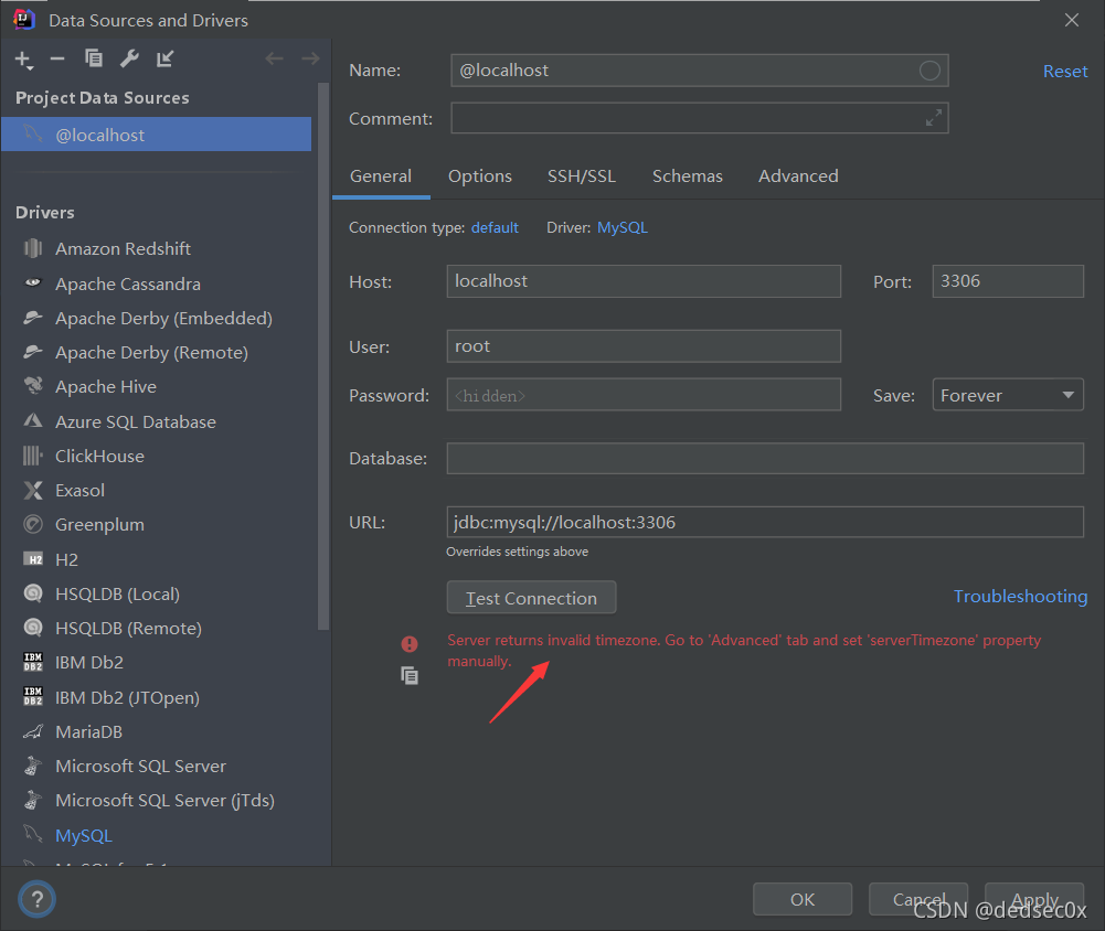 然后点击右边的+号然后选择自己的数据库,这里使用的是MYSQL