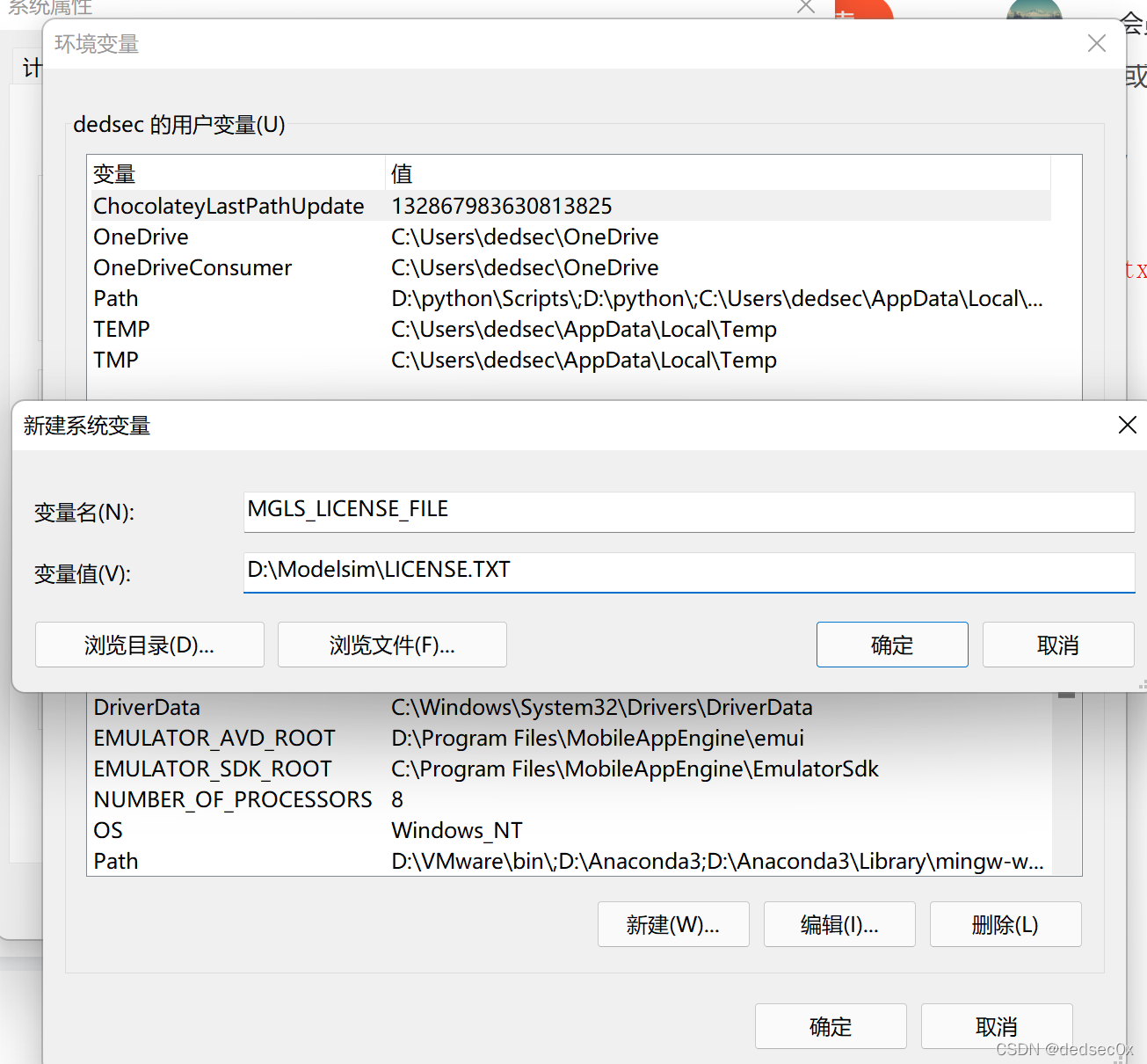 最后设置环境变量名MGLS_LICENSE_FILE,变量值为license放置的路径。