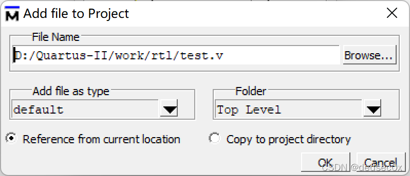 进入此界面后选择Add Existing File,找到之前创建的.v文件。