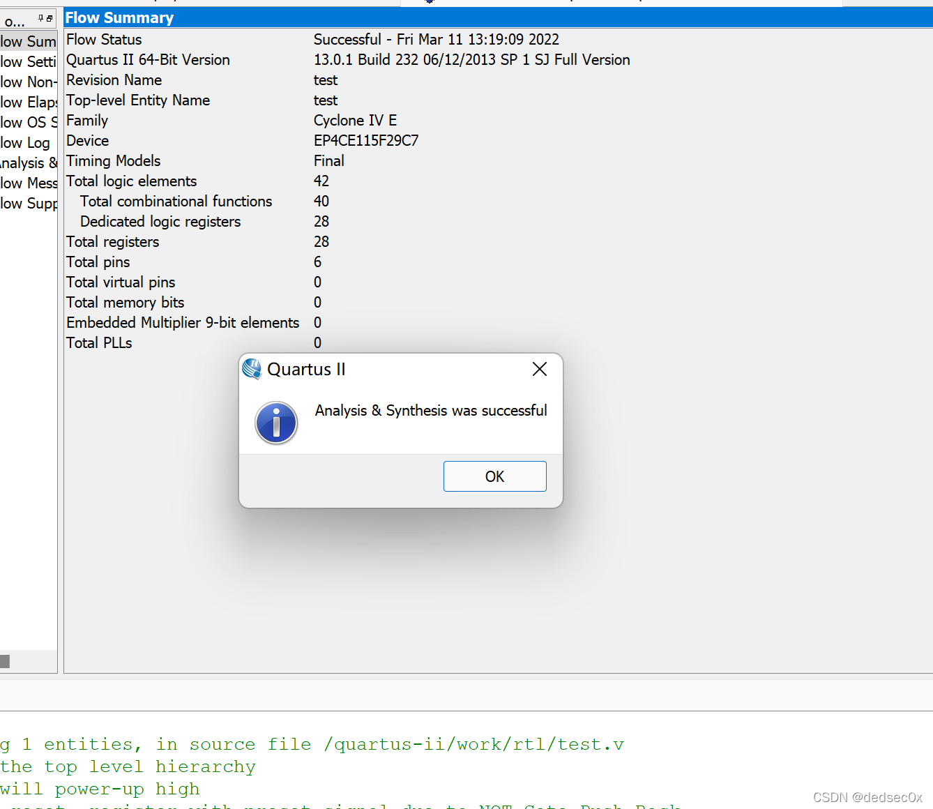 工具栏中Analysis & Synthesis来验证语法是否正确。