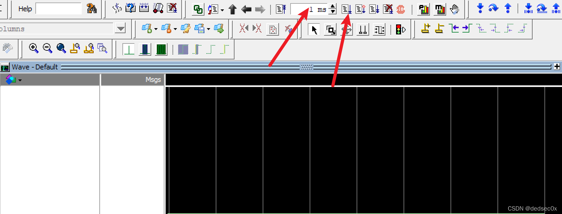 然后右键,点击add Wave,将仿真时间调为1ms,点击右边的运行。