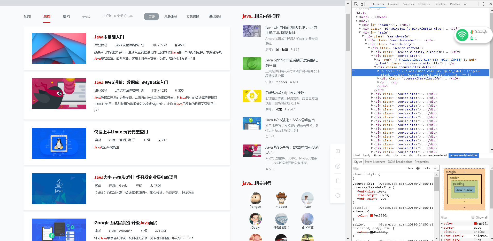 我选择的是爬取慕课网的关于java的课程,网址为https://www.imooc.com/search/course?words=java;