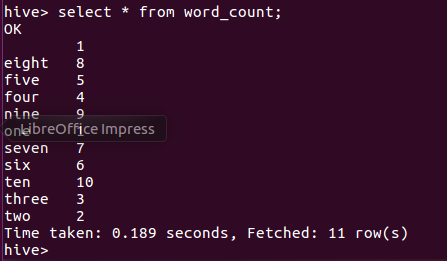 用HQL进行词频统计,结果放在表word_count里