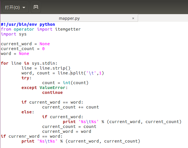 本文介绍如何使用Python编写WordCount程序,包括map和reduce函数的实现,以及如何在Hadoop环境中部署和运行该程序。