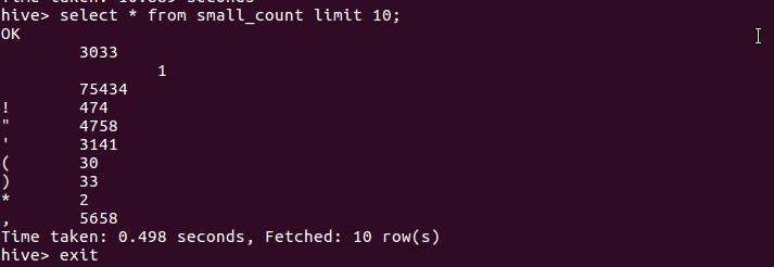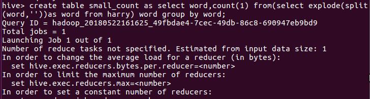 1.用Hive对爬虫大作业产生的文本文件(或者英文词频统计下载的英文长篇小说)进行词频统计