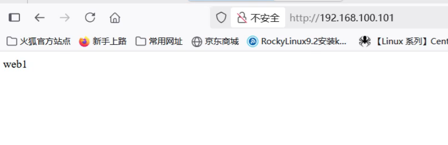 ####192.168.100.1 ##修改主机名 [root@localhost ~]# hostnamectl set-hostname web1 [root@localhost ~]# bash [root@web1 ~]# yum insatll -y nginx [root@web1 ~]# systemctl start nginx [root@web1 ~]# echo web1 > /usr/share/nginx/html/index.html