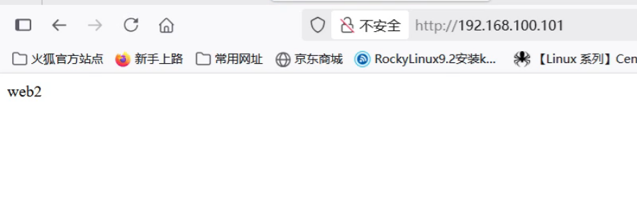 ####192.168.100.2 ##修改主机名 [root@localhost ~]# hostnamectl set-hostname web2 [root@localhost ~]# bash [root@web2 ~]# yum insatll -y nginx [root@web2 ~]# systemctl start nginx [root@web2 ~]# echo web2 > /usr/share/nginx/html/index.html