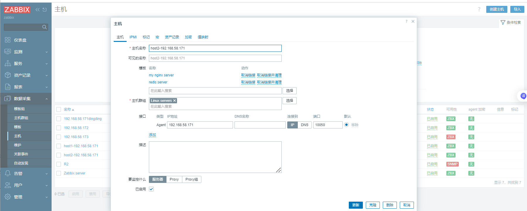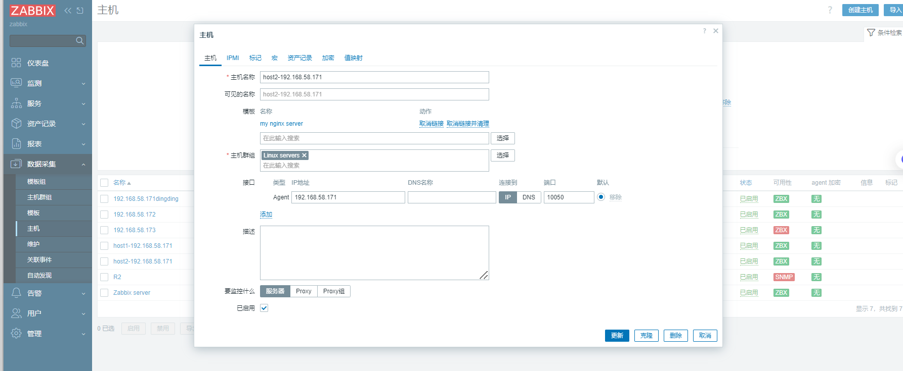 创建监控主机,连接模板