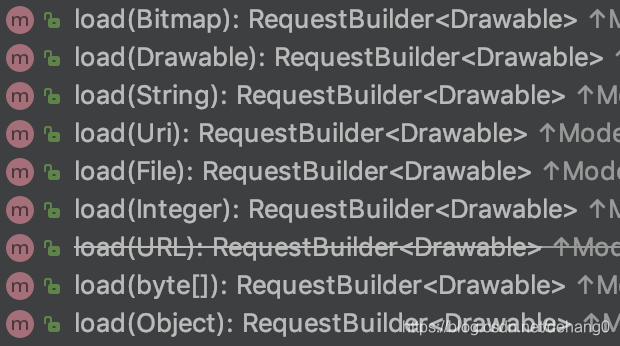 asDrawable方法返回RequestBuilder后,接着调用它的load方法传入图片url: