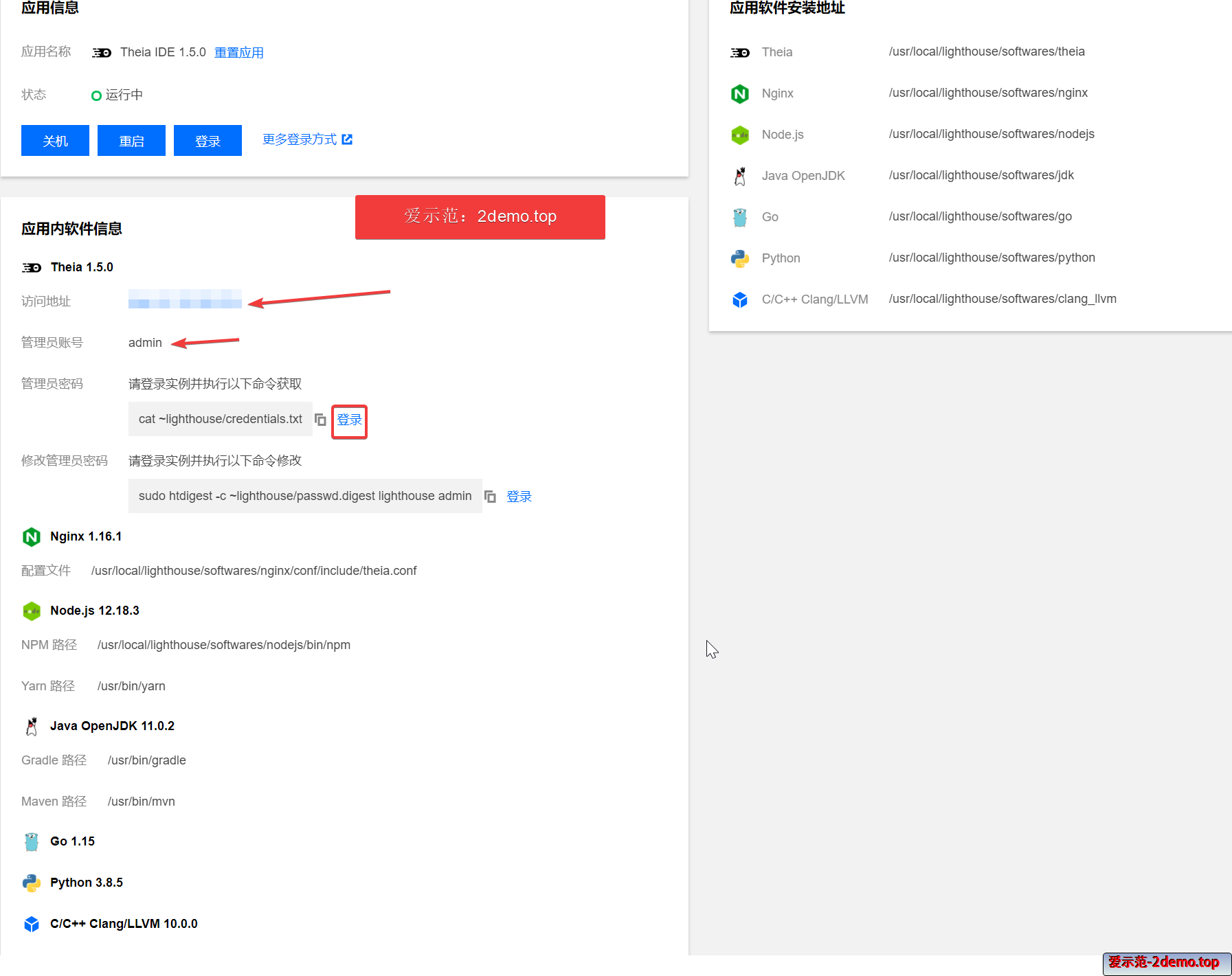 要登录云端IDE需要获取访问地址,管理员账号及密码。
