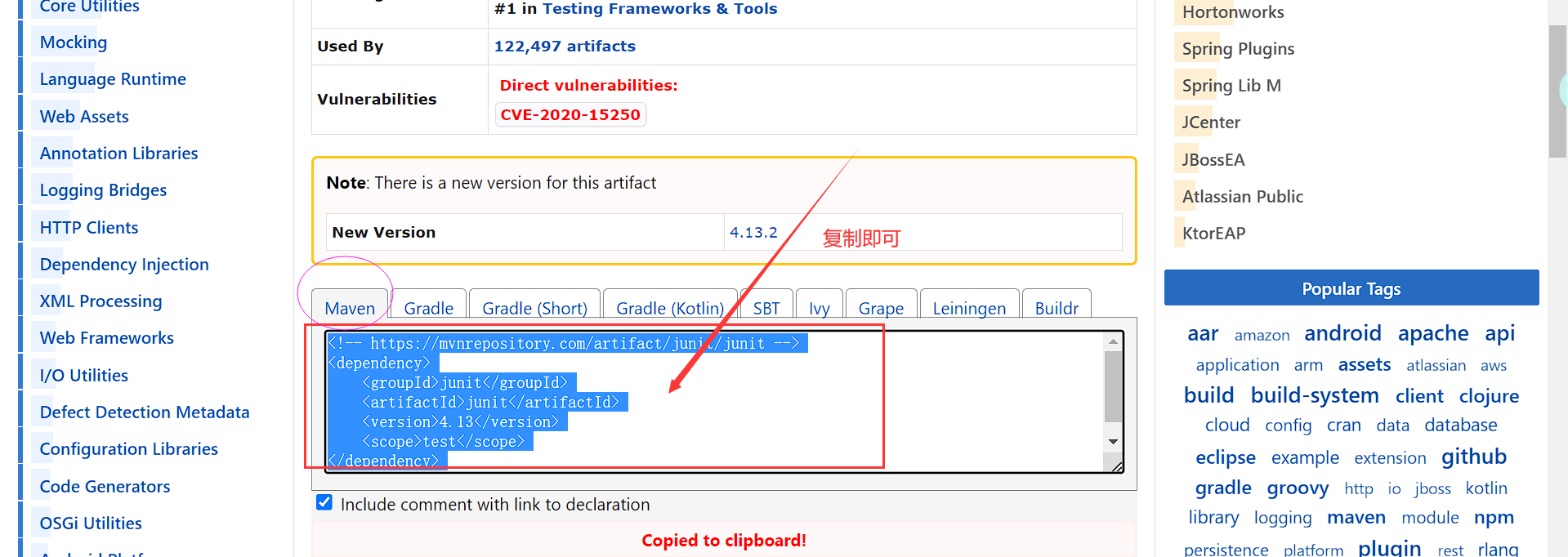 比如,我想知道junit的坐标写法