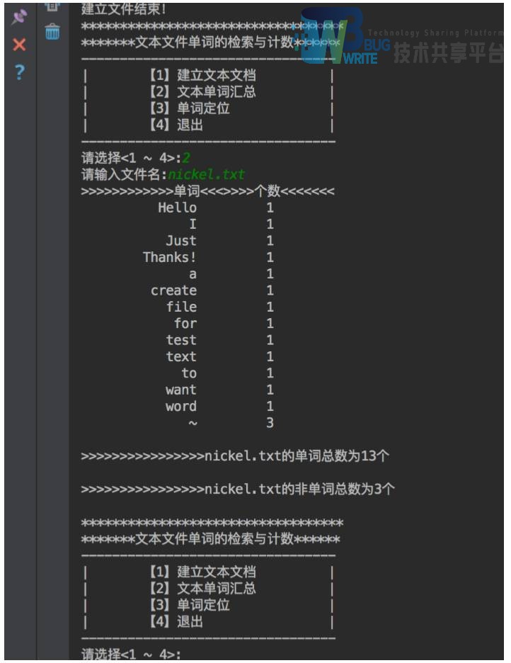 单词检索系统要求实现的功能比较多,所以具体实现起来还是很有很多不同的选择的,第二部分单词计数问题我是用了map来计数,mt表示单词出现的次数。第三部分输出单词所在的行号则使用了类来按行读取数据,实现输出单词所在行号以及该行中出现的相应的位置。