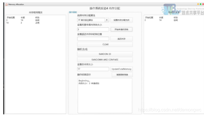 本文介绍了一个内存管理程序的设计与实现,重点讲解了FF、BF、WF等内存分配策略及其回收过程,并通过实际案例展示了如何使用这些算法进行内存的申请与释放。