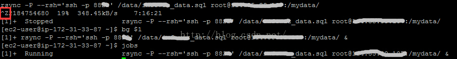 然后就可以看到命令执行的进度了。而且,在你断网的这一段时间里,服务器端的命令一直在运行着。