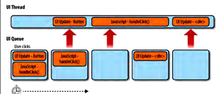 浏览器有个UI线程,包括UI更新和JS的执行。和UI线程相关的是队列系统。