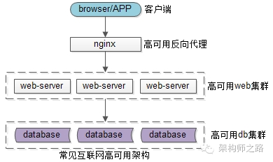 在服务化之前,互联网的高可用架构大致是这样一个架构: