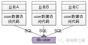 在有用户服务之前,各个业务线都是自己通过DAO写SQL访问user库来存取用户数据,这无形中就导致了代码的拷贝。