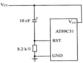 2、上电复位 AT89C51的上电复位电路如图2所示,只要在RST复位输入引脚上接一电容至Vcc端,下接一个电阻到地即可。对于CMOS型单片机,由于在RST端内部有一个下拉电阻,故可将外部电阻去掉,而将外接电容减至1µF。上电复位的工作过程是在加电时,复位电路通过电 容加给RST端一个短暂的高电平信号,此高电平信号随着Vcc对电容的充电过程而逐渐回落,即RST端的高电平持续时间取决于电容的充电时间。为了保证系统能够可靠地复位,RST端的高电平信号必须维持足够长的时间。上电时,Vcc的上升时间约为10ms,而振荡器的起振时间取决于振荡频率,如晶振频率为10MHz,起振时间为1ms;晶振频率为1MHz,起振时间则为10ms。在图2的复位电路中,当Vcc掉电时,必然会使RST端电压迅速下降到0V以下,但是,由于内部电路的限制作用,这个负电压将不会对器件产生损害。另外,在复位期间,端口引脚处于随机状态,复位后,系统将端口置为全“l”态。如果系统在上电时得不到有效的复位,则程序计数器PC将得不到一个合适的初值,因此,CPU可能会从一个未被定义的位置开始执行程序。