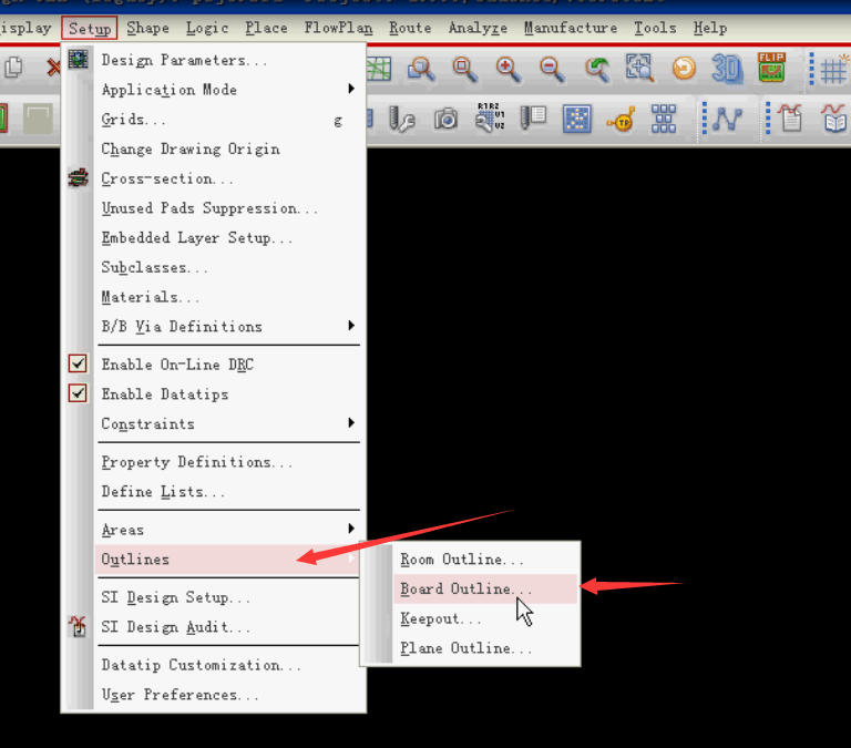 2种设置outline方法,创建2个KI,两个keepin,,r:允许布线区;p允许摆放元件的区域