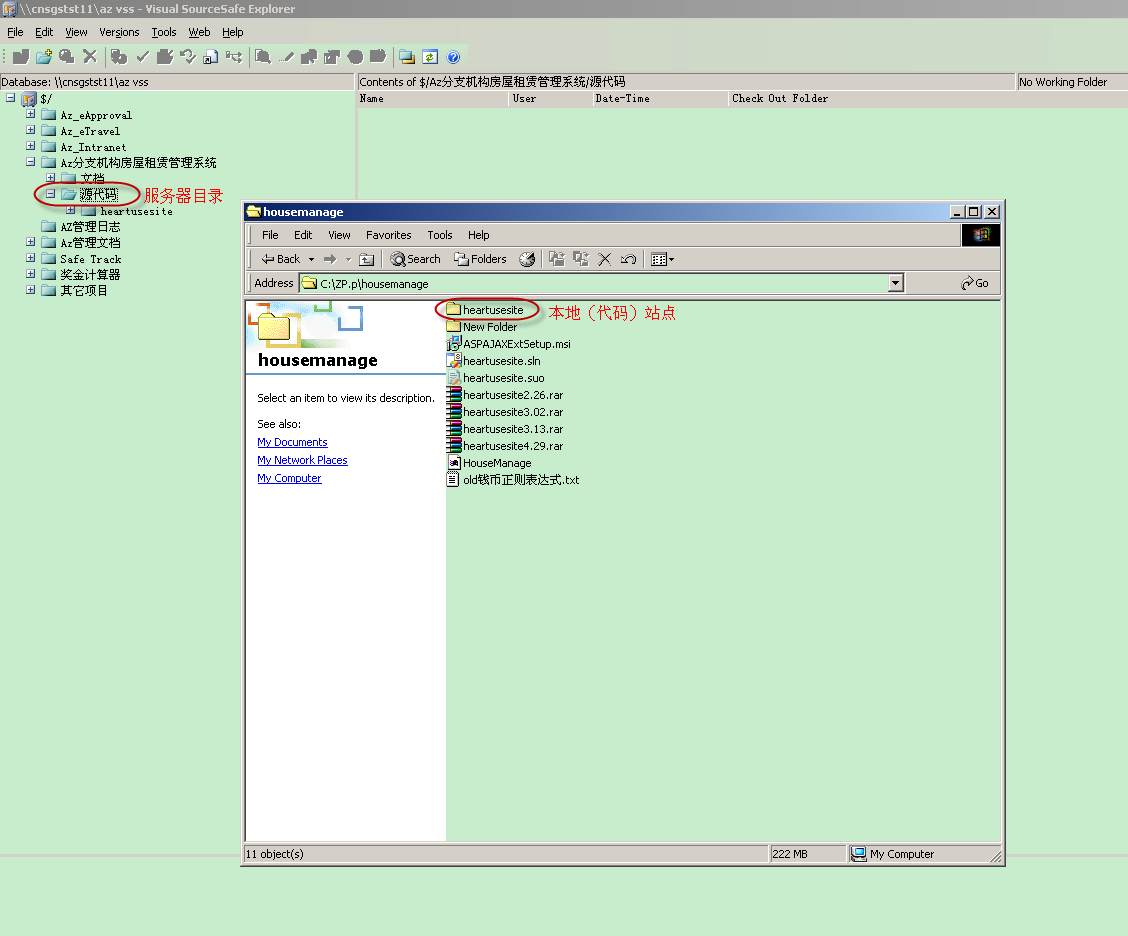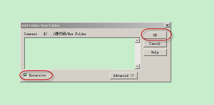 1.进入服务器公共目录:服务器已经设置了公共目录folder“源代码”,打开Visual SourceSafe Explorer,首先将本地站点目录“拖进”服务器公共目录,将会弹出一个“Add Folder New Folder”的UI界面,勾选中“recursive”选项,点击“OK”按钮;