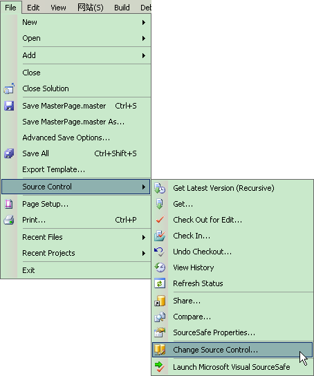 2.Bind操作:服务器层级目录与本地层级目录一一绑定。做完第一步操作,将本地站点(或项目)重新打开,展开工具条中的“File”菜单,会发现菜单中多了“Source Control”选项。进一步展开“Source Control”菜单,选中“source Control”选项,即会弹出一UI界面,界面中列出几个需要绑定的条目;选中其中一个条目,点击该界面上方的“Bind”按钮……每个条目一一类此操作。
