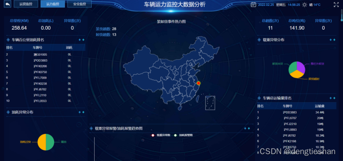 接收包括直属快速环路、各区环卫单位的监管数据,对车辆各类情况进行实时监控,包括车辆定位考勤、车辆行驶轨迹、车辆油耗、作业质量进行实时监管。