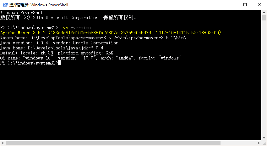 验证:在命令行中输入mvn -version,出现下面这个界面,说明Maven已经安装成功。