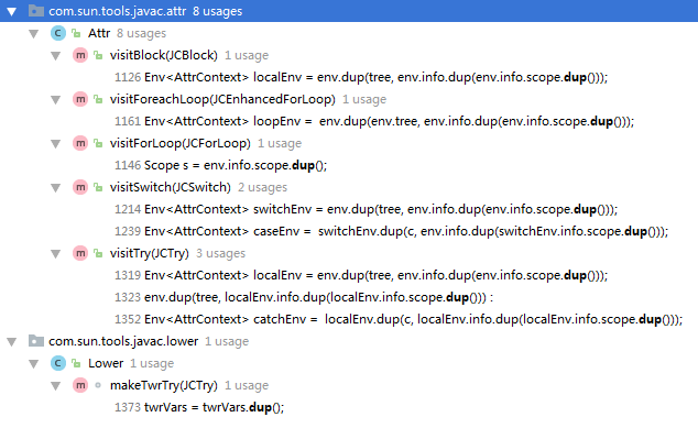 共有几处调用这个dup()方法,如下截图: