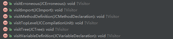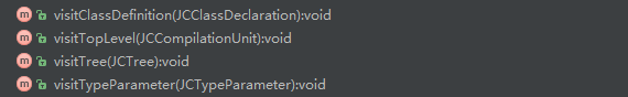 visitTree(JCTree)方法同样是一个空实现 ,主要处理的语法节点为JCCompilationUnit,JCImport,JCMethodDeclaration与JCVariableDeclaration语法节点。